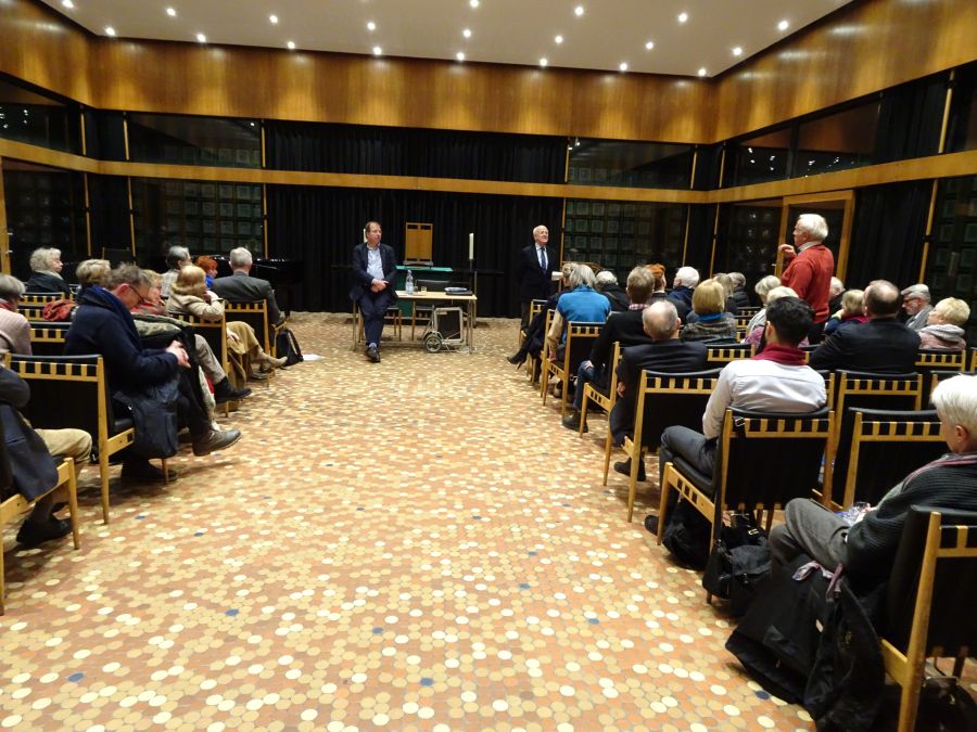 Ein begeisternd erzählender Prof. Dr.Etienne François bereitete den 60 interessierten Zuhörern in der Kapelle der Kaiser-Wilhelm-Gedächtniskirche einen intensiven Abend über das Leben von Pfarrer Franz Stock. Es war Beeindruckend, wie historischer Kontext mit einem Leben verknüpft wurde, welches ganz im Geiste der deutsch-französischen-polnischen Freundschaft stand. „Abbé Franz Stock, das ist kein Name, das ist ein Programm!“ sagte Nuntius Roncalli, der spätere Papst Johannes XXIII am 28.2.1948.