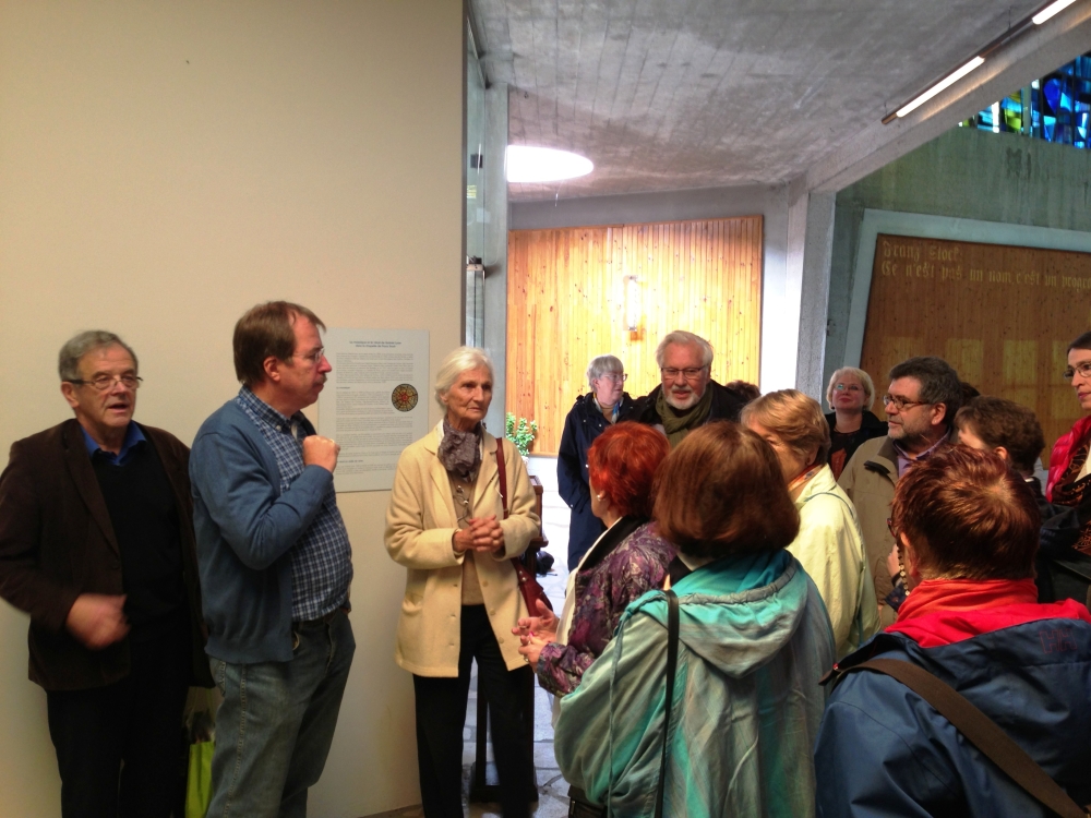 Die 33-köpfige Berliner Reisegruppe besuchte zunächst den Mont Valérien bei Paris, auf dem während der deutschen Besatzungsherrschaft in Frankreich (1940-1944) tausende französische Widerstandskämpfer und Geiseln hingerichtet worden waren. Die Abschiedsbriefe der Gefangenen und der seelische Beistand, den Franz Stock den Verurteilten zukommen ließ, bewegten die Berliner Gruppe zutiefst. Die meisten hatten zuvor noch nie von Franz Stock gehört. In der Kirche von Rechèvres hielt Agnes Raucamp, ein Mitglied der Berliner Gemeinde, einen sehr informativen Vortrag über sein Leben. Gemeinsam mit Annie Loire, der Witwe Gabriel Loires, begab sich die Gruppe an die Grabkapelle von Franz Stock in Rechèvres und stimmte zu Ehren des europäischen Friedensstifters das Lied „Dona nobis pacem“ an. Anschließend besuchten die Berliner das neue Europäische Begegnungszentrum im ehemaligen Stacheldratseminar in Le Coudray bei Chartres, das ihnen von Jean Mercier, aktives Mitglied der französischen Franz-Stock-Vereinigung, ausgiebig vorgestellt wurde. Zum Abschluss des Besuchs berichtete Markus Klüppel (Soest) von den Aktivitäten des deutschen Franz-Stock-Komitees, das mit zwei Vertretern die Berliner Reisegruppe begleitete.