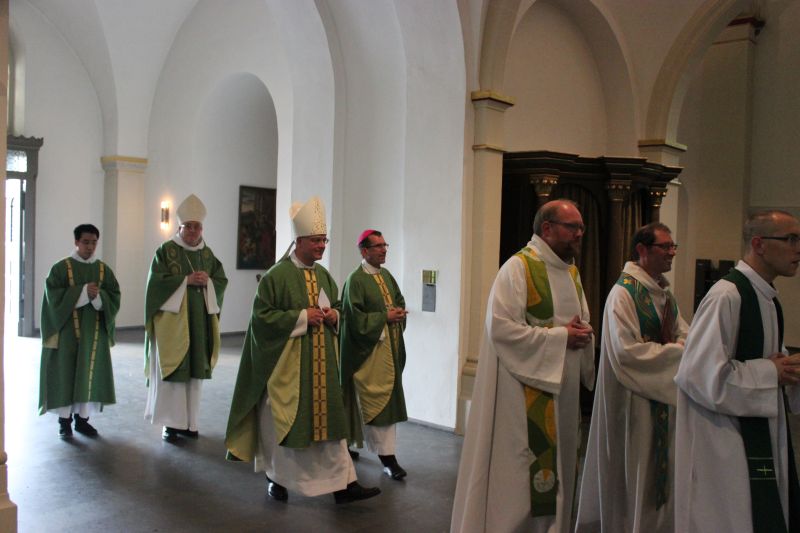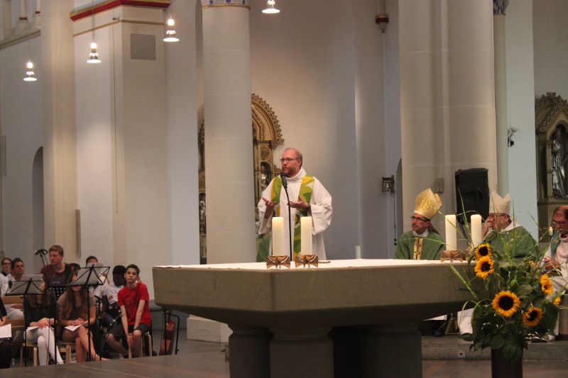 „Christen waren die Ersten, die die Hände zur Versöhnung zwischen Frankreich und Deutschland ausgestreckt haben. Einer dieser jungen Menschen war Franz Stock“, erinnerte Weihbischof Matthias König in seiner Predigt beim Pontifikalamt in der St. Johannes-Kirche. „Er hat ein neues Fundament für die deutsch-französische Freundschaft gelegt. Wir wissen, dass das heutige Europa darauf gründet. Es verbindet sich damit auch ein Auftrag an junge Menschen, sich für Frieden und Freundschaft einzusetzen. Die Liebe bleibt die stärkste Waffe gegen Hass. Das ist schon immer christliche Überzeugung gewesen.“