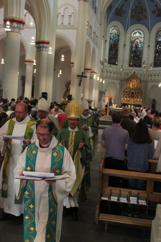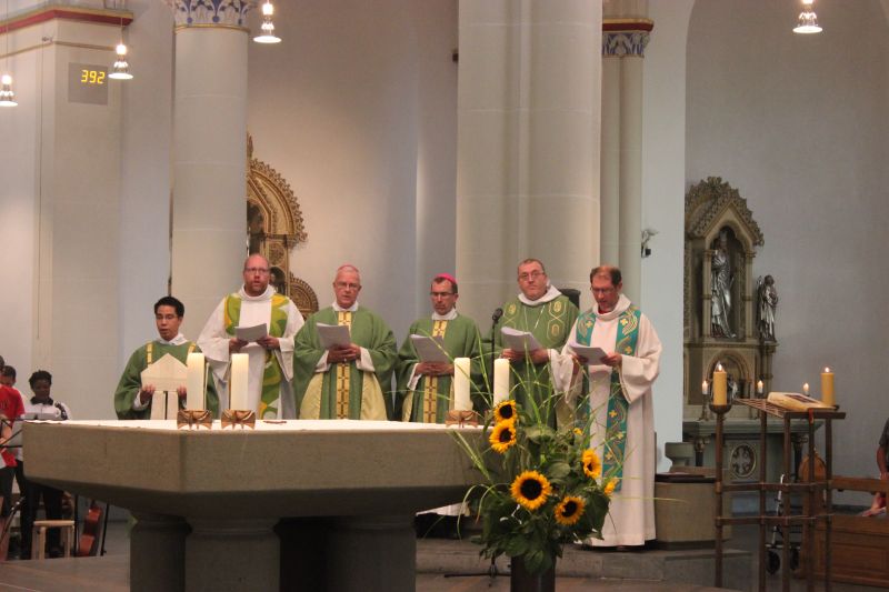 Gemeinsam mit dem Bischof von Le Mans, Yves le Saux, und Bischof Michel Pansard (Chartres) feierten Weihbischof König und zahlreiche Priester beider Nationen ein beeindruckendes Pontifikalamt, das von Jugendlichen und Organisatoren der Pilgerreise mitgestaltet wurde. Auch Gäste aus Uganda brachten sich aktiv in den Gottesdienst ein und zeigten ihre freudig, mitreißende Form der Messfeier.