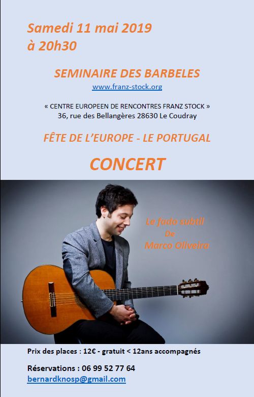 2019 04 18 flyer recto 2019 1Aus Anlass des Europatages wird wieder zu einem Konzert in der Europäischen Begegnungsstätte Franz Stock Chartres eingeladen. Termin: Samstag, 11. Mai 2019 um 20:30 Uhr