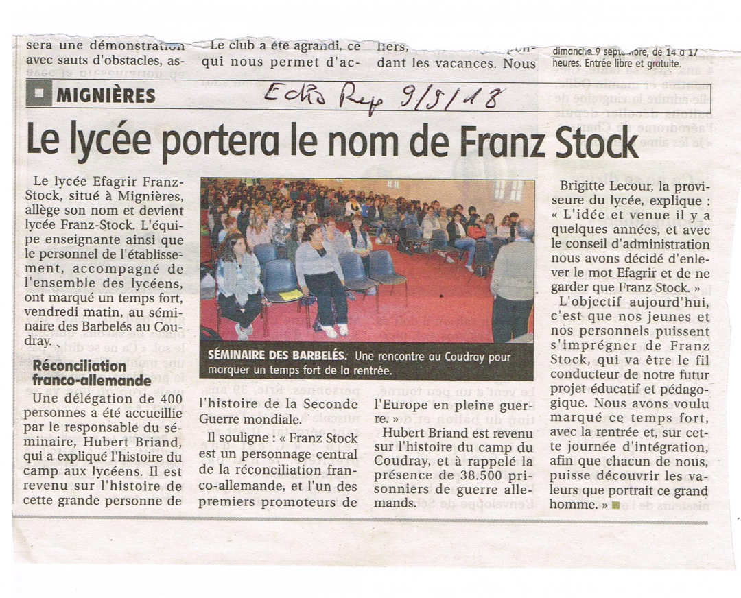 Die Begegnung begann mit der offiziellen Eröffnung der Franz-Stock-Ausstellung der Amis de Franz Stock in der Universität der Picardie „Jules Verne“ (in der Bibliothek der Zitadelle). Es schloss sich ein ausführliches Gespräch mit den Besuchern an, zu denen auch die Tochter eines von Franz Stock betreuten zum Tode Verurteilten gehörte. Die Ausstellung fand in einer von der Universität veranstalteten Reihe „Fraternité“ (Brüderlichkeit) statt.