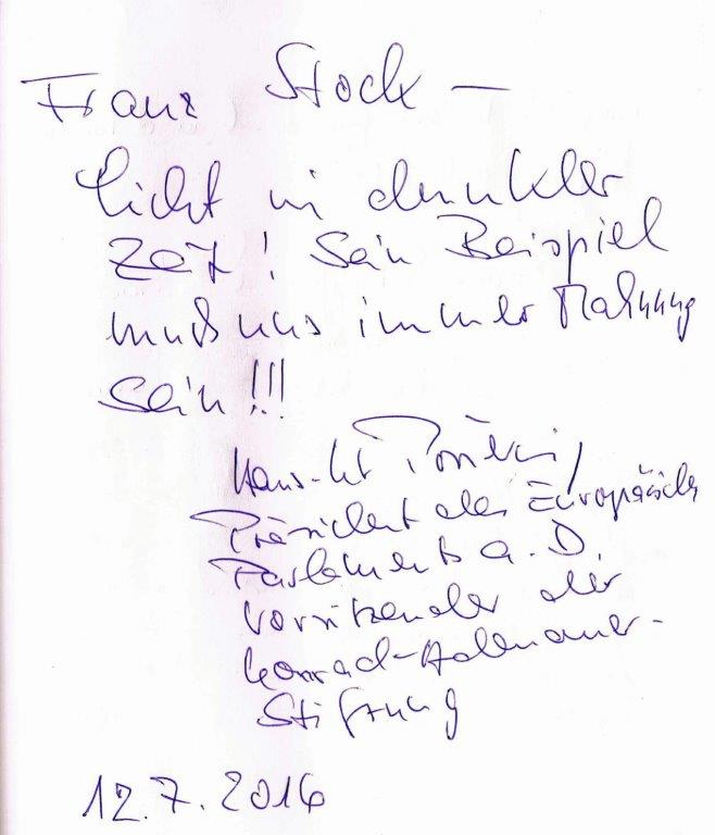 „Bereits als Jugendlicher hat sich Franz Stock für Frieden und Versöhnung eingesetzt“, erinnerte Pfarrer Stephan Jung, Pfarrer der St. Johannes-Gemeinde und Vorsitzender des Franz-Stock-Komitees für Deutschland. „Wenn wir heute an die Gründergestalten des heutigen Europas erinnern, dann gehört Franz Stock dazu.“