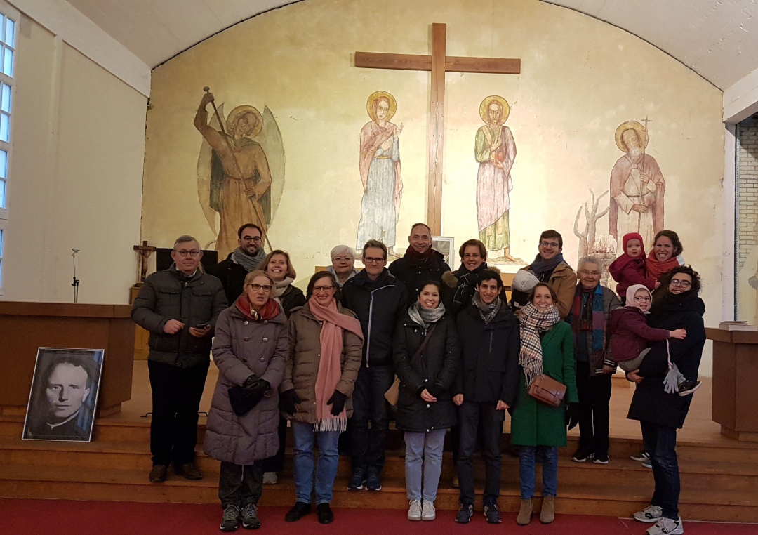 Témoignage de Monsieur et Mme Eberentz, fille de Jean Poutiers, qui montre des dessins de son père et ses lettres où il est fait mention des visites de Franz Stock dans sa prison. Elle a constitué un dossier qu’elle transmet à l’association.