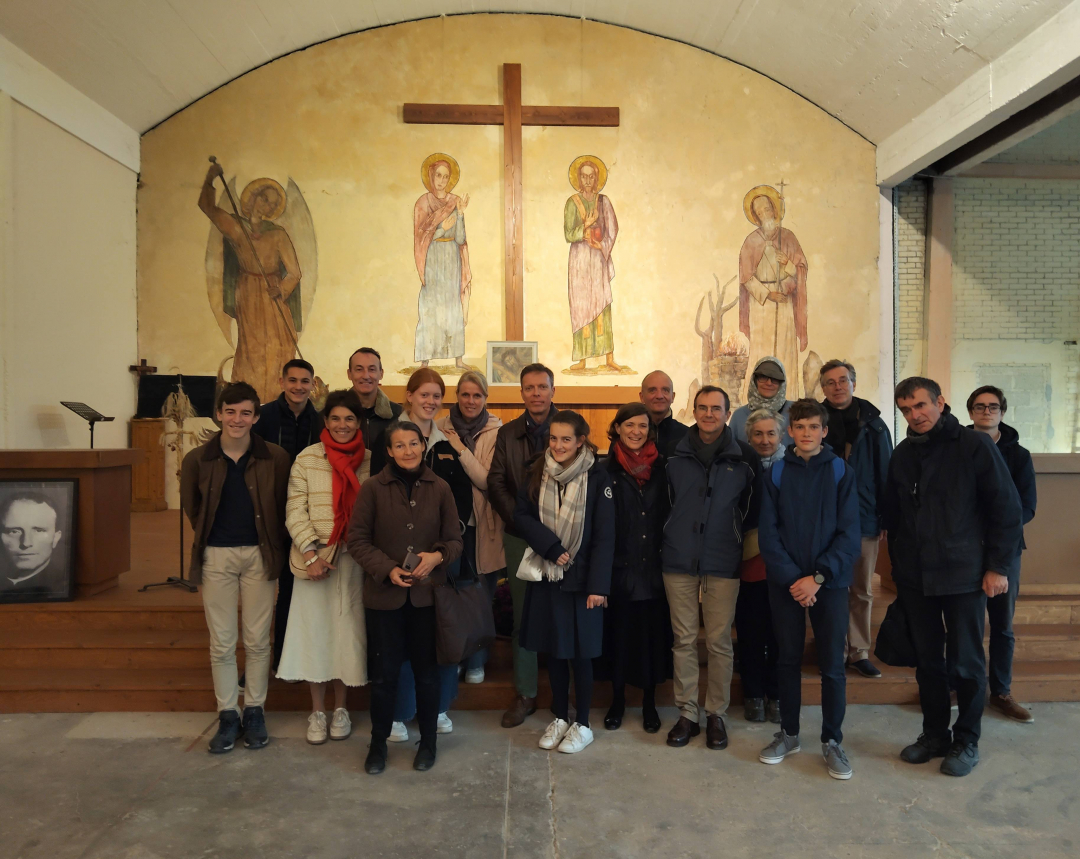 Samedi après-midi 18 octobre 2025, après avoir visité Notre Dame de Chartres, ce groupe de pèlerins ont découvert ce lieu de mémoire où, à la fin de la guerre, furent regroupés des prisonniers allemands séminaristes.