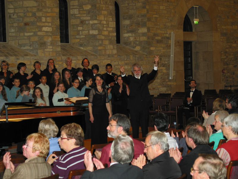 Weitere Programmpunkte waren von Wolfgang Amadeus Mozart „Tantum ergo“ „Ave verumcorpus“, „Laudatedominum“ und „Alleluia“, von Joseph Haydn „Abendlied zu Gott“ und „Aus dem Dankliede zu Gott“ sowie eine kurze, sechsteilige Messe für den heiligen Johannes. In der zweiten Hälfte des Konzerts trug Murielle Richard-Petit, die seit der Gründung des Chors als Klavierbegleiterin fungiert, das „Préludepour piano“ vor. Faszinierend klar und klangvoll sangen die beiden Solisten Teile der Kantate für den Frieden von AlexandréBéneteau, nach dem Libretto von SobhiHachi, der ebenfalls unter den Zuhörern war und in diesem Jahr sein Buch über Gibran veröffentlicht. Die freitonale Kompositionsweise und die gefühlvolle, abwechslungsreiche Interpretation dieser Kantate schaffte eine magische Atmosphäre, die vom Publikum mit stehenden Ovationen belohnt wurde. Ein Gegenbesuch in Chartres im nächsten Jahr ist schon in Planung.