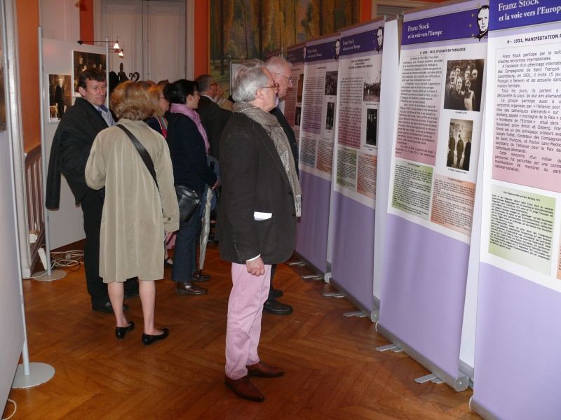 In seiner Eröffnungsansprache hob Bürgermeister Goasguen zwei Aspekte in den Vordergrund: Franz Stock habe hat an die deutsch-französische Versöhnung geglaubt und habe sich für diese eingesetzt in einer Zeit, in der dieses nicht so selbstverständlich war. Er betonte weiter, dass die Ausstellung gerade zu diesem Zeitpunkt besonders wichtig sei, in der viele Menschen am Sinn der Europäischen Union zweifelten und besonders viele Franzosen das Gefühl hätten, dass Deutschland etwas mehr für die wirtschaftliche Entwicklung in der EU tun könnte und deshalb die Gefahr einer gewissen Entfremdung entstehe.