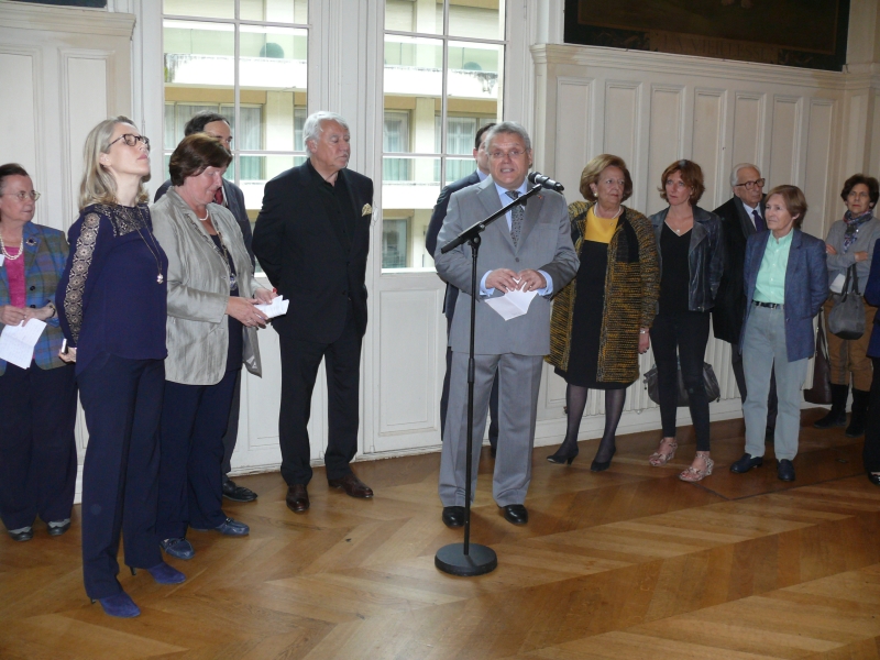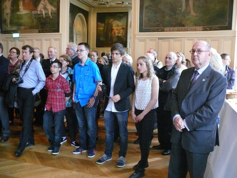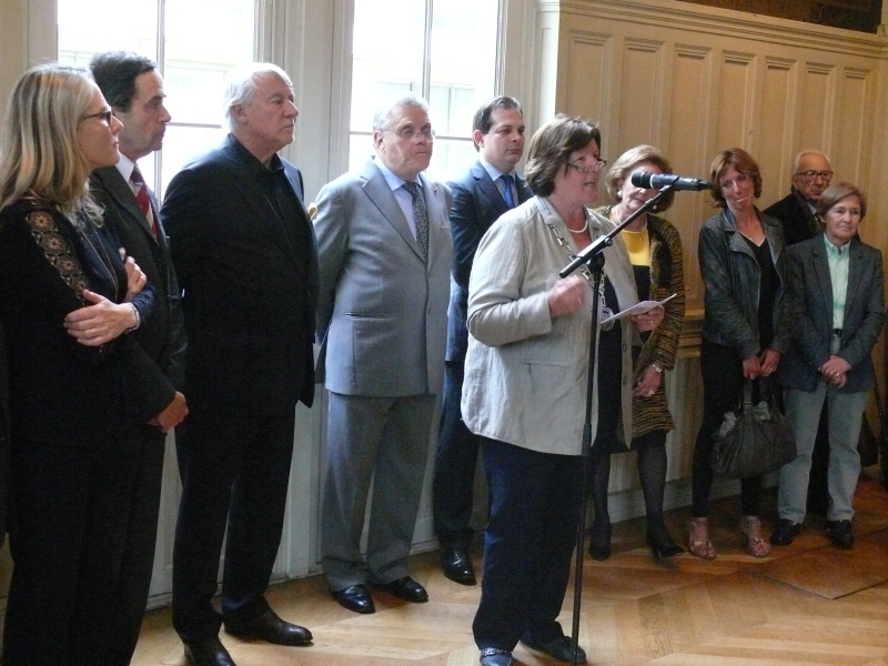 Eine große Würdigung erfuhr die Ausstellung 'Franz Stock - und der Weg nach Europa', die im Jahre 2012 im Sauerland-Museum in Arnsberg viele Besucher begeistert hatte, jetzt in Frankreich. Der französischen Schwesterorganisation des Franz-Stock-Komitees, Les Amis de Franz Stock, ist es nämlich gelungen, die Ausstellung im Rathaus des 16. Arrondissement, einem der prestigereichsten Bezirke von Paris, zu zeigen. Unter der Schirmherrschaft der deutschen Botschafterin in Frankreich, Dr. Susanne Wasum-Rainer, eröffneten am Montag, dem 4. Mai, der Bürgermeister des XVI. Arrondissements, Claude Goasguen, und der neue Vorsitzenden der Amis de Franz Stock, Stephane Chmelewsky, die Ausstellung. Anwesend waren neben Vertretern aus der Politik, u.a. auch der Bürgermeister von Chartres, Geistliche und zahlreiche interessierte Bürger aus Paris, die stellvertretende Bürgermeisterin von Arnsberg, Rosemarie Goldner, und vom Franz-Stock-Komitee Thomas Bertram und Margreth Dennemark.