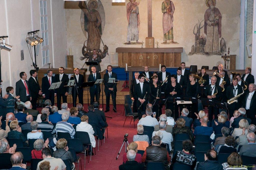 A 20h30 commençait le Concert Mémoire, chants entrecoupés de commentaires sur Franz Stock, resitué dans le cours des évènements entre la Libération  de 1944 et la mort de F. Stock en février 1949, qui repose désormais depuis 1963 à  Chartres en l’église saint Jean baptiste de Rechèvres.