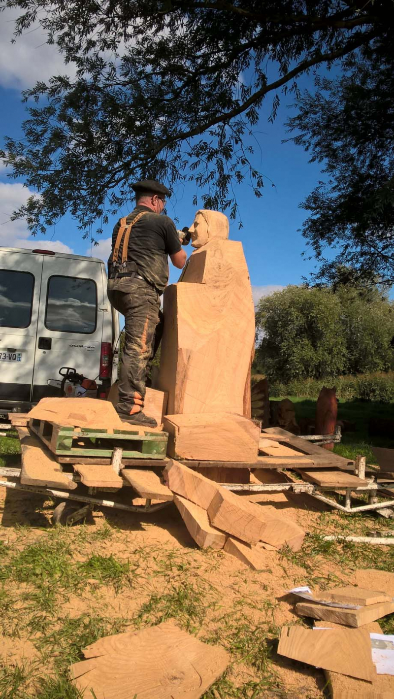 Cette oeuvre prendra place face à l'entrée du Séminaire des barbelés - Centre Européen de Rencontres Franz Stock au camp du Coudray.La statue tirée d'une bille de  bois de cèdre de plus de 200 ans, provient d'un ancien presbytère de Coulonges les Sablons dans l'Orne, sera gardée qqs mois à l abri et traitée à l' huile de lin avant sa mise en place à l'extérieur. Elle est presque certainement la première statue de Franz Stock en pied, et tout à fait surement la première statue de celui-ci en bois./.