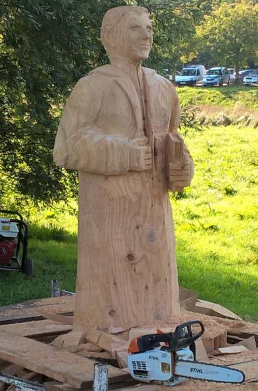 Une statue de Franz Stock en bois offerte aux Amis de Franz Stock